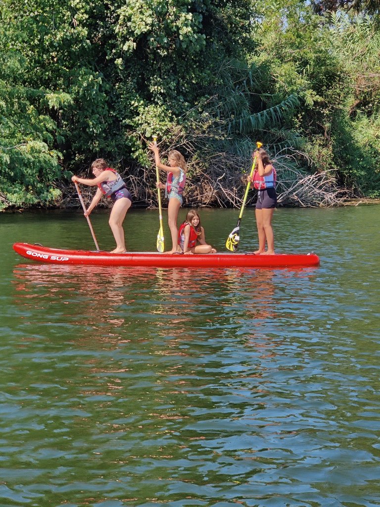 Agora toda a família pode ir passear junta de Stand Up Paddle. Temos disponível uma prancha big SUP, é uma prancha de Stand Up Paddle muito grande que permite levar todos. Solicite-a aos nossos monitores e divirta-se em família nas calmas e limpas águas do Mondego.