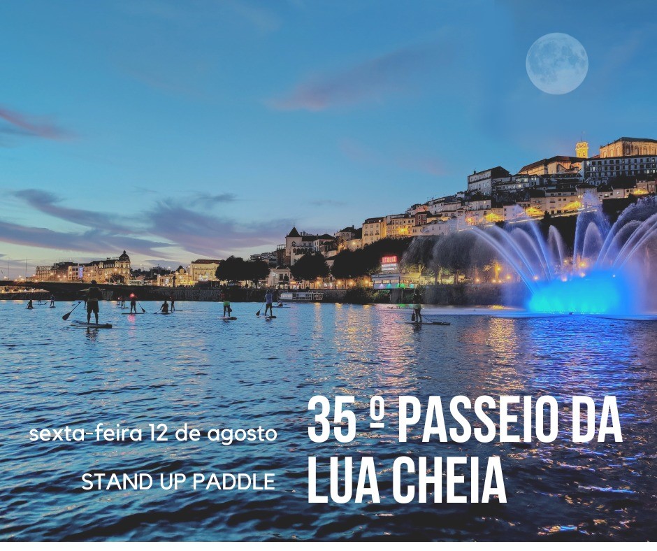 Nas noites de lua cheia do verão, organizamos um passeio de SUP guiado à noite e acompanhado por diversos monitores, nas calmas águas do rio Mondego com a duração de duas horas. Inclui equipamento completo de SUP, leash de segurança, colete e seguros.