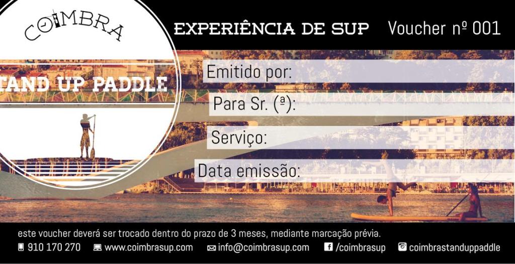 Com os nossos vouchers pode oferecer ao amigo, namorado ou familiar uma experiência de Stand Up Paddle e tornar a sua prenda inesquecível. Basta enviar-nos uma mensagem e o voucher é-lhe enviado por correio ou entregue pessoalmente. A experiência a oferecer pode ser qualquer uma dos nossos serviços.